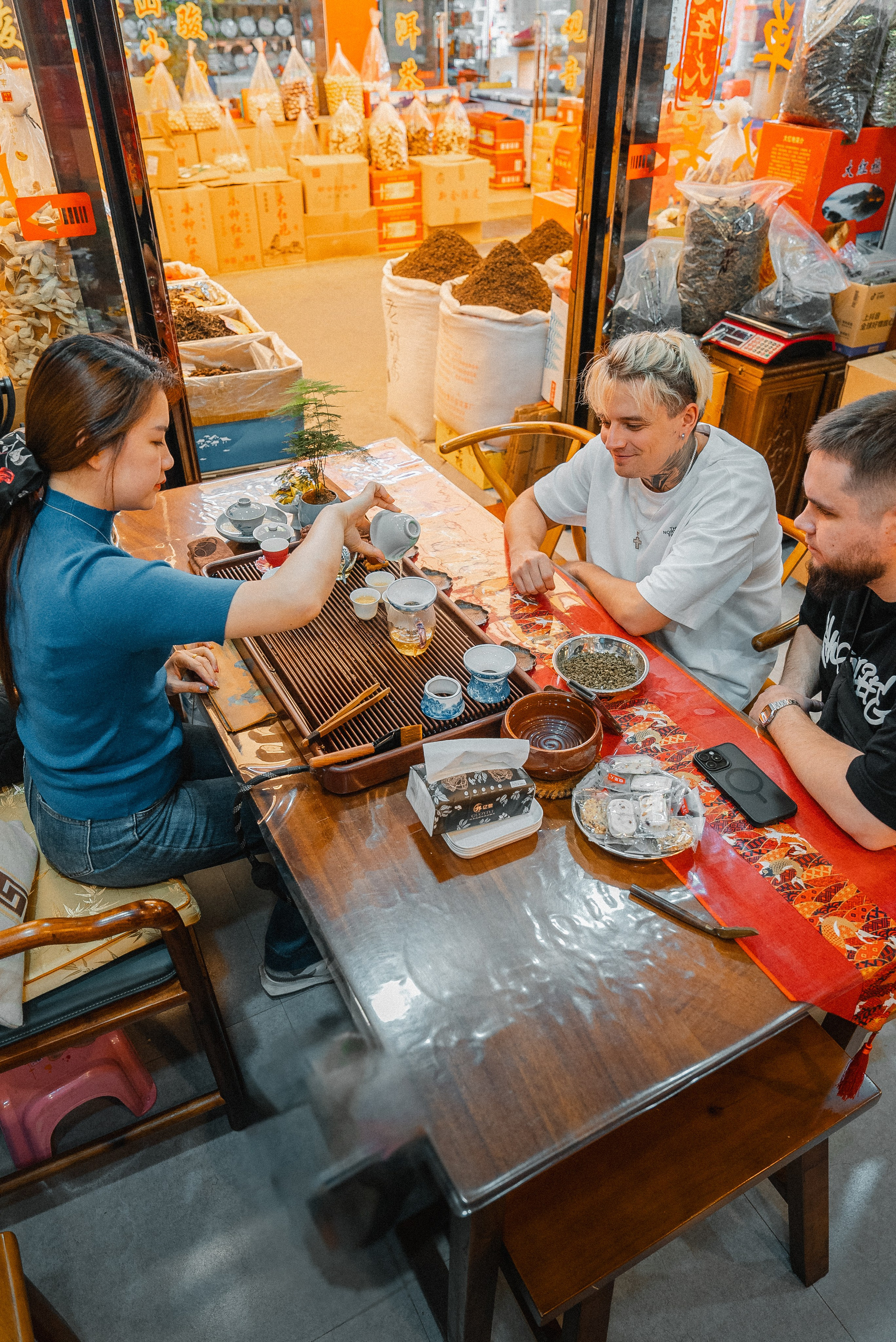 Т.к. Айрочай продает китайский чай, с точки зрения контента было правильно показать основателей компании именно на том самом рынке, где представлены все чайные плантации и продавцы чая (их там около 3000). Конечно же, это вызывает доверие у зрителей как к реальным экспертам.